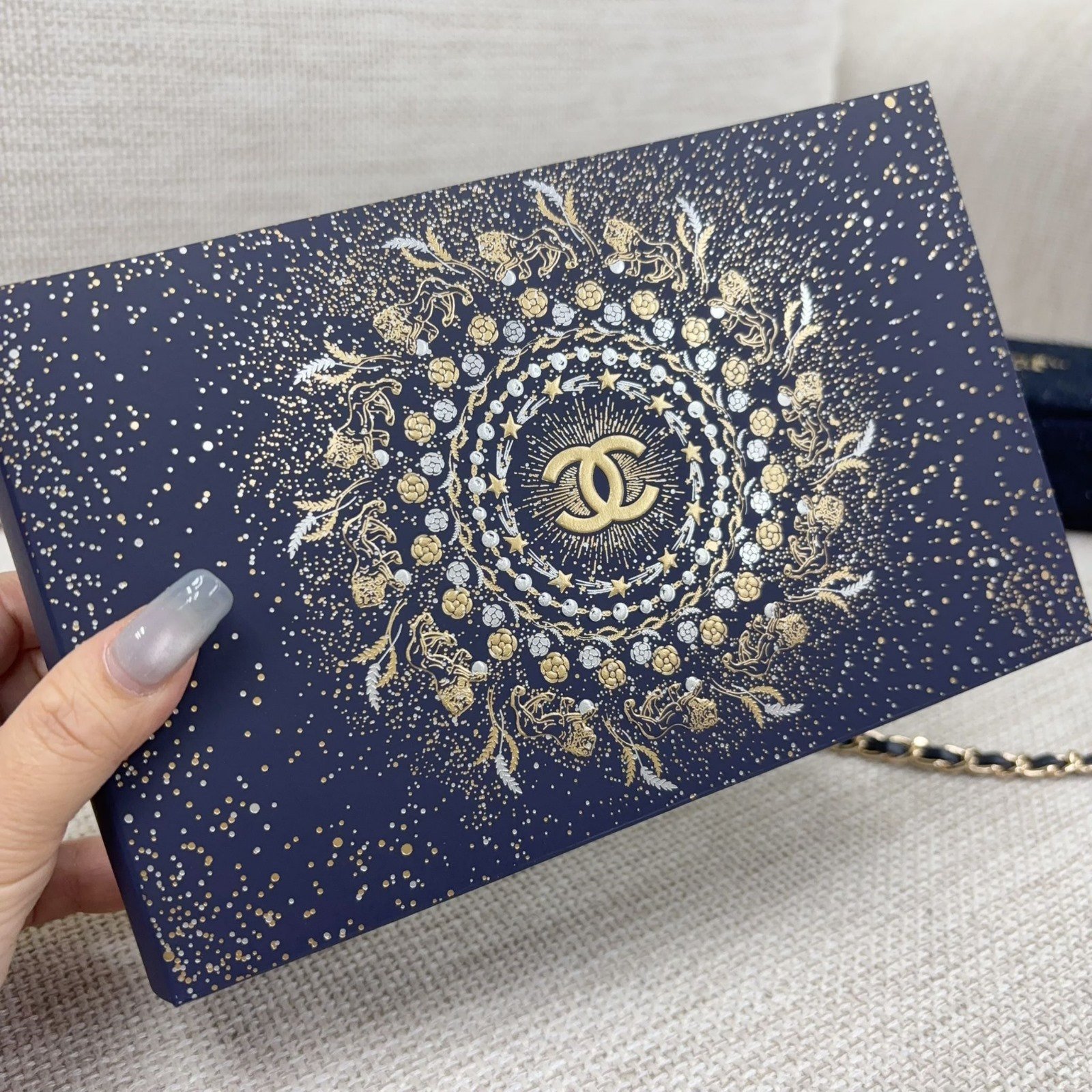 逢星期日截單 截單後預計14-28個工作天到貨 內容包括: ✨ 2025年最新款聖誕限量版絨毛化妝袋包安裝連鏈 Size : 19.5cm x 12cm x 5cm ✨ 今次仲配埋特製寶藍色金皮鏈110cm ✨ 聖誕限量版包裝盒勁高貴 ✨ diy黑皮頸鏈 配 Chanel Beauty鎖匙釦 (cc款式鎖匙釦所屬Chanel Beauty出品,頸鏈是我們自行配的,,非專門店出品,,介意者勿買) ✨ 送聖誕🎄禮物一流