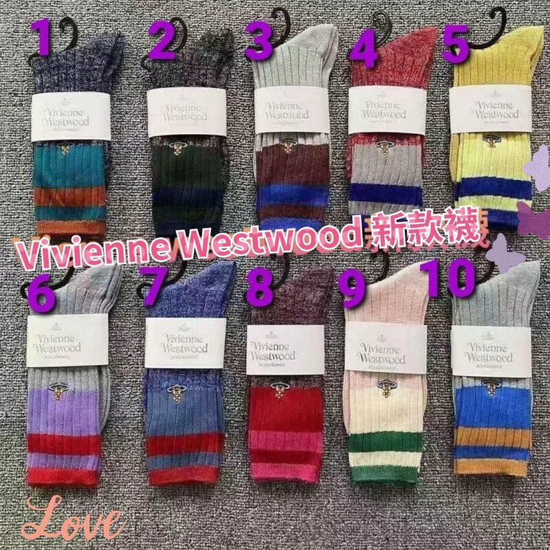T0382 Vivienne Westwood刺繡logo中筒拼色襪